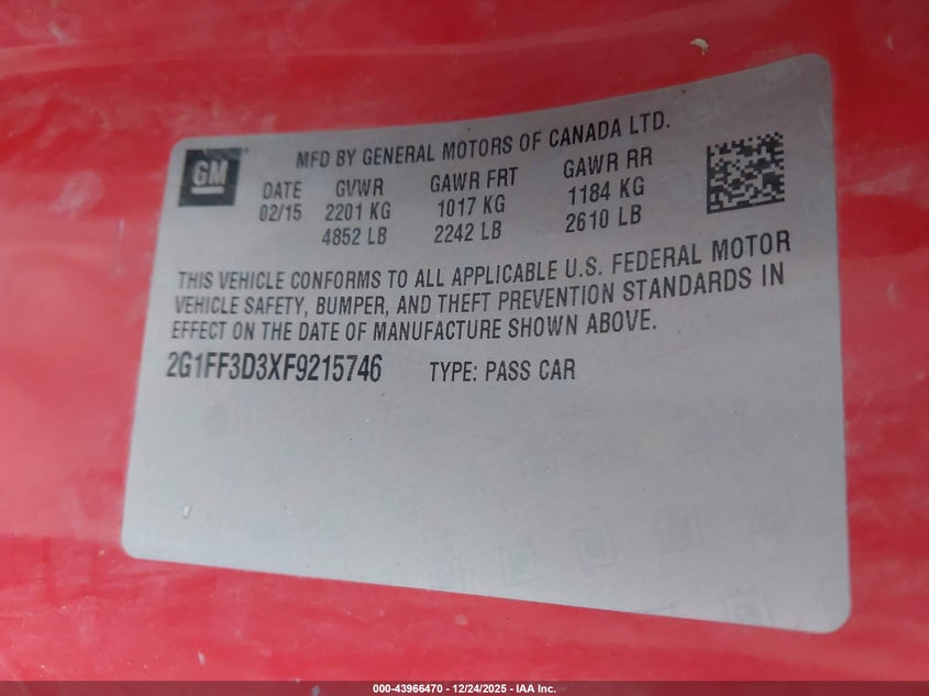 2015 Chevrolet Camaro 2Lt