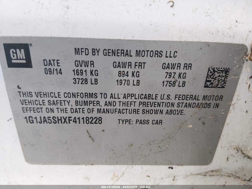 2015 Chevrolet Sonic Ls Auto