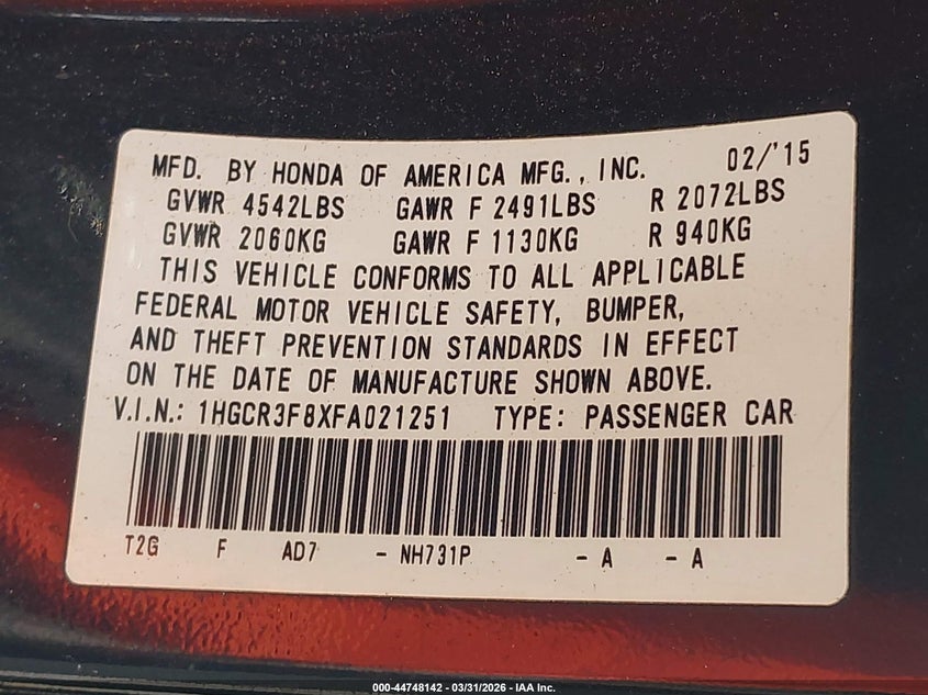 2015 Honda Accord Ex-L V-6