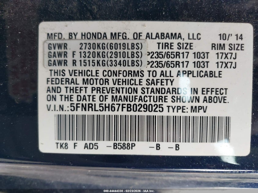 2015 Honda Odyssey Ex-L