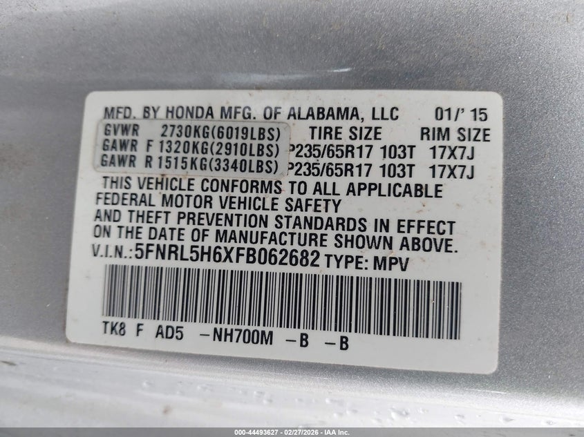2015 Honda Odyssey Ex-L
