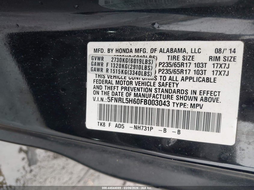 2015 Honda Odyssey Ex-L