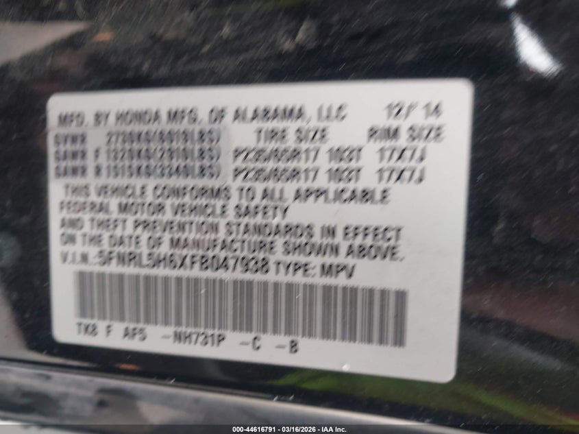 2015 Honda Odyssey Ex-L