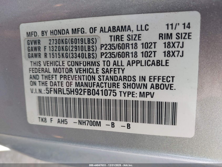2015 Honda Odyssey Touring/Touring Elite