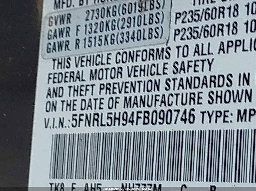 2015 Honda Odyssey Touring/Touring Elite