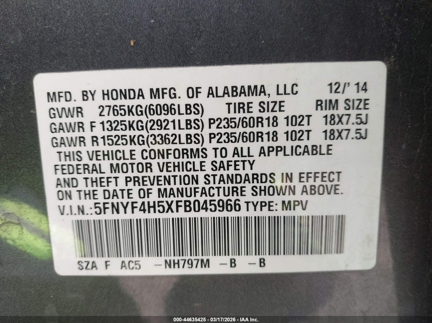 2015 Honda Pilot Ex-L