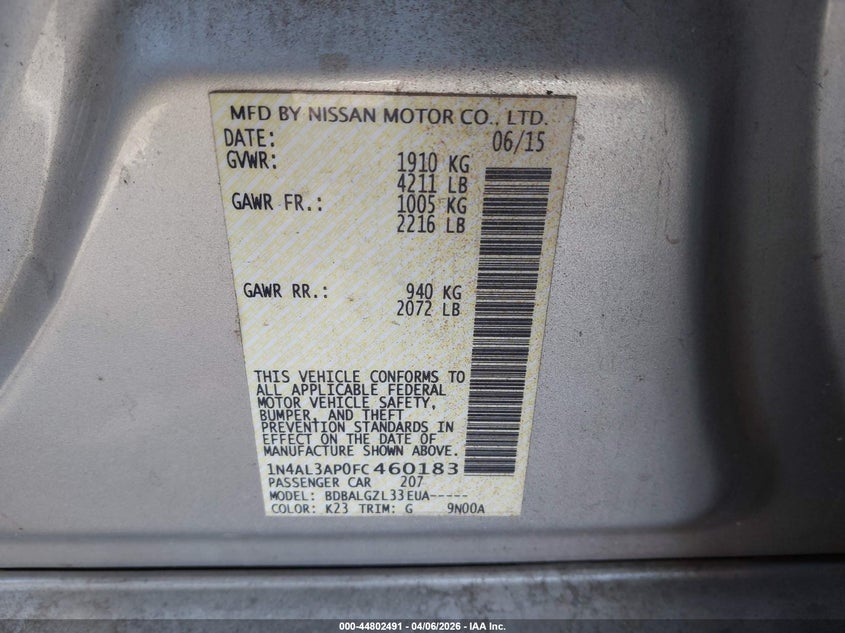 2015 Nissan Altima 2.5/2.5 S/2.5 Sl/2.5 Sv
