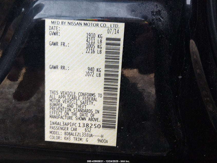 2015 Nissan Altima 2.5 S