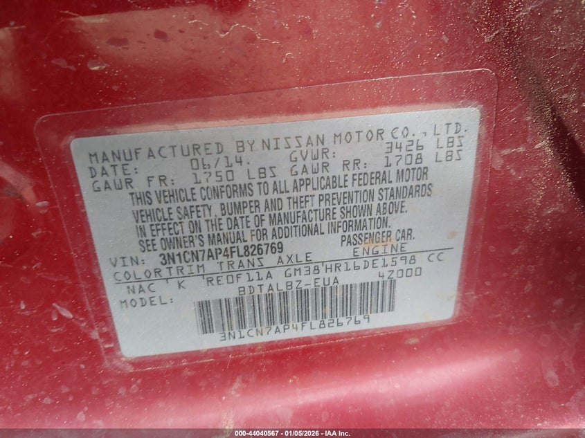 2015 Nissan Versa 1.6 S/1.6 S+/1.6 Sl/1.6 Sv