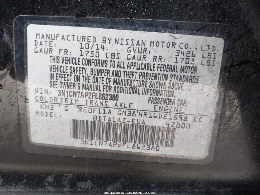 2015 Nissan Versa 1.6 S+