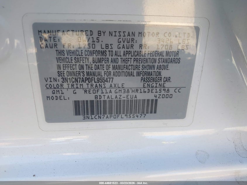 2015 Nissan Versa 1.6 S+