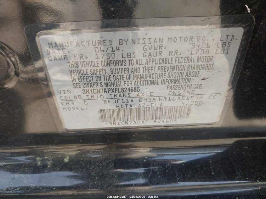 2015 Nissan Versa 1.6 S+