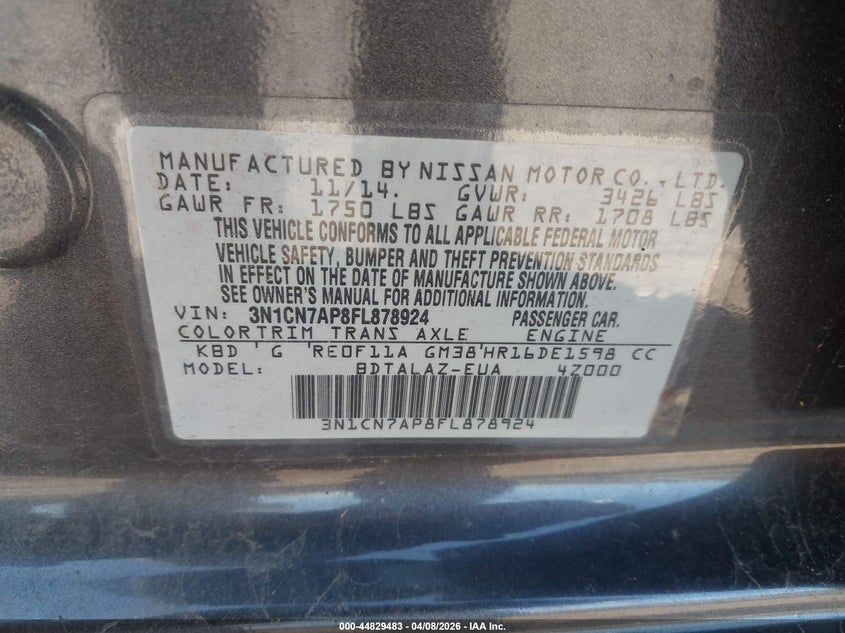 2015 Nissan Versa 1.6 S+