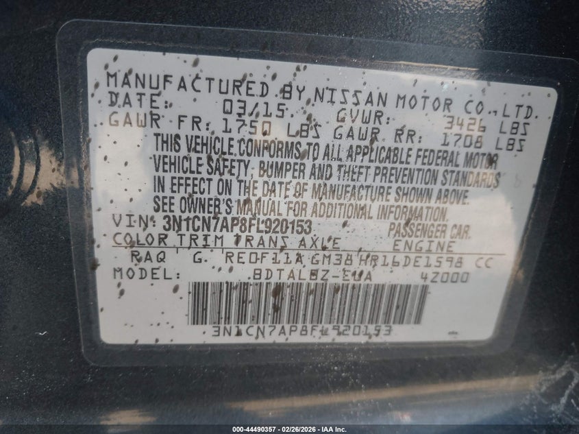 2015 Nissan Versa 1.6 Sv
