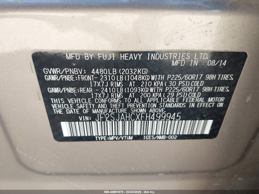 2015 Subaru Forester 2.5I Limited