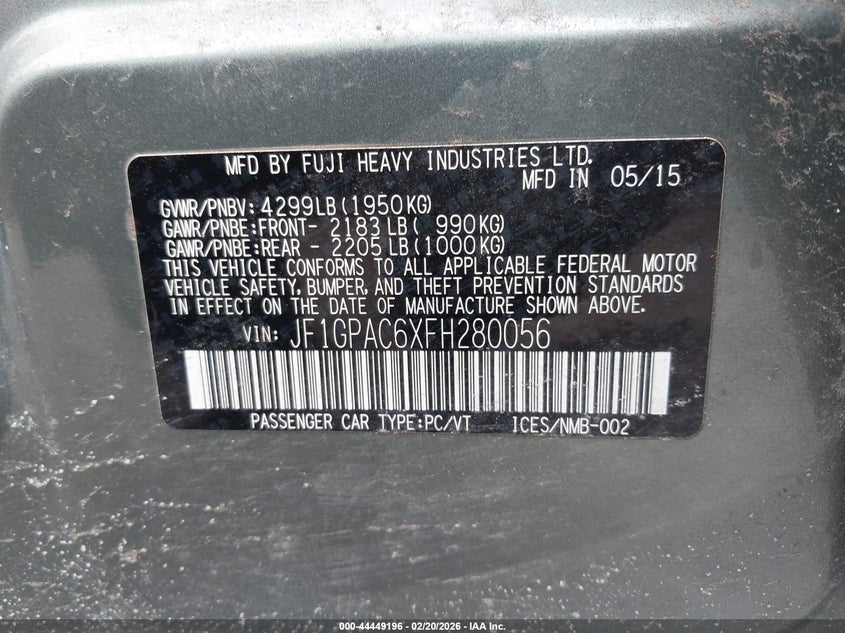 2015 Subaru Impreza 2.0I Premium