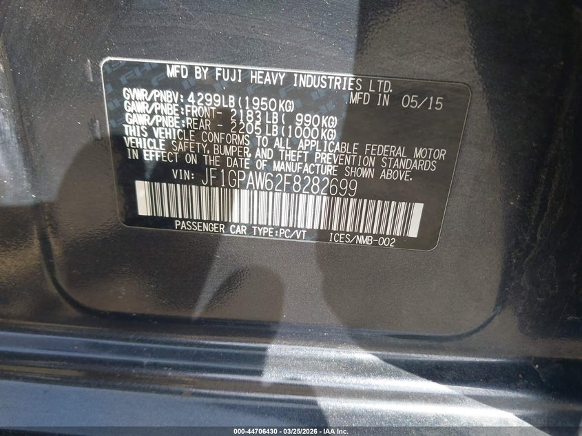 2015 Subaru Impreza 2.0I Sport Limited