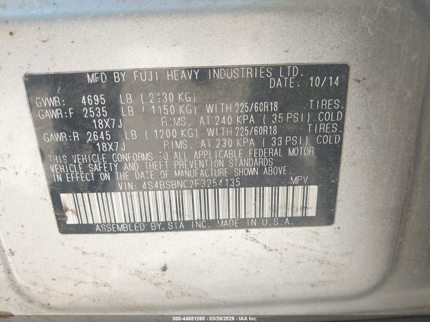 2015 Subaru Outback 2.5I Limited