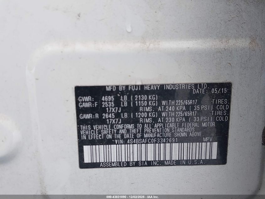 2015 Subaru Outback 2.5I Premium