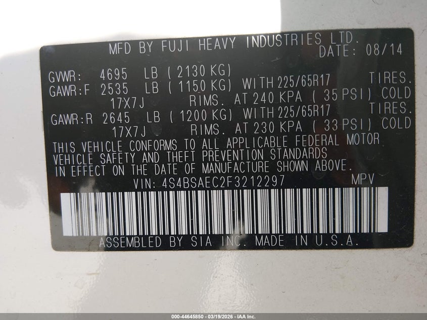 2015 Subaru Outback 2.5I Premium
