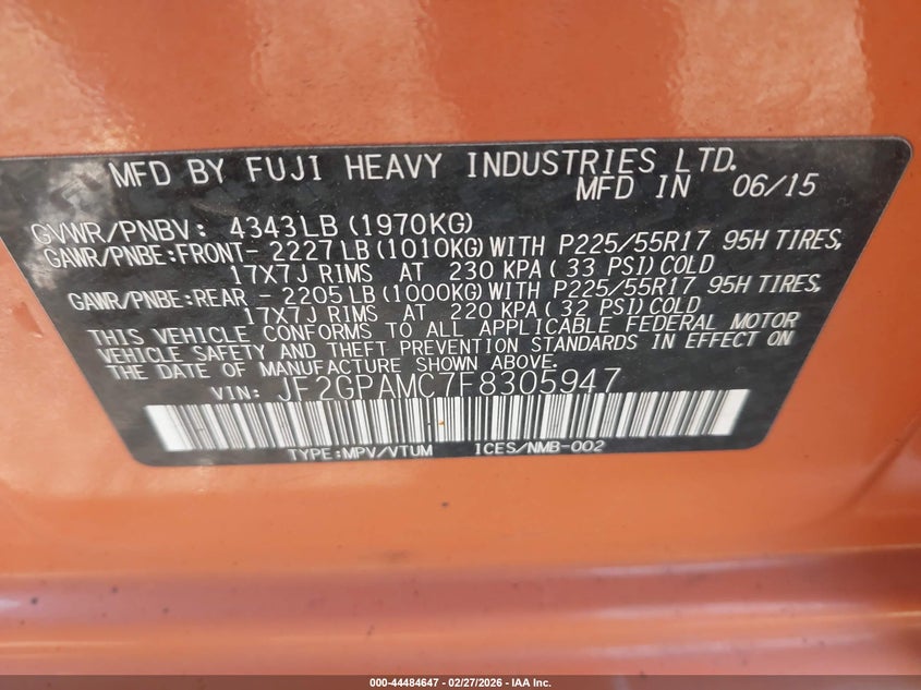 2015 Subaru Xv Crosstrek 2.0I Limited