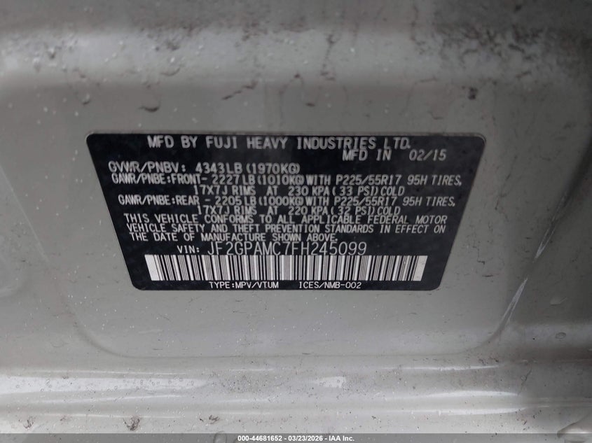 2015 Subaru Xv Crosstrek 2.0I Limited