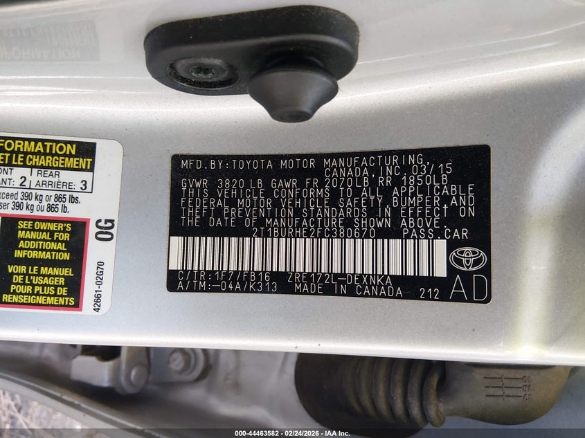 2015 Toyota Corolla Le Plus