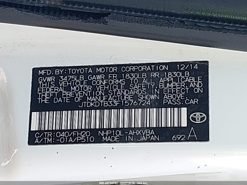 2015 Toyota Prius C One