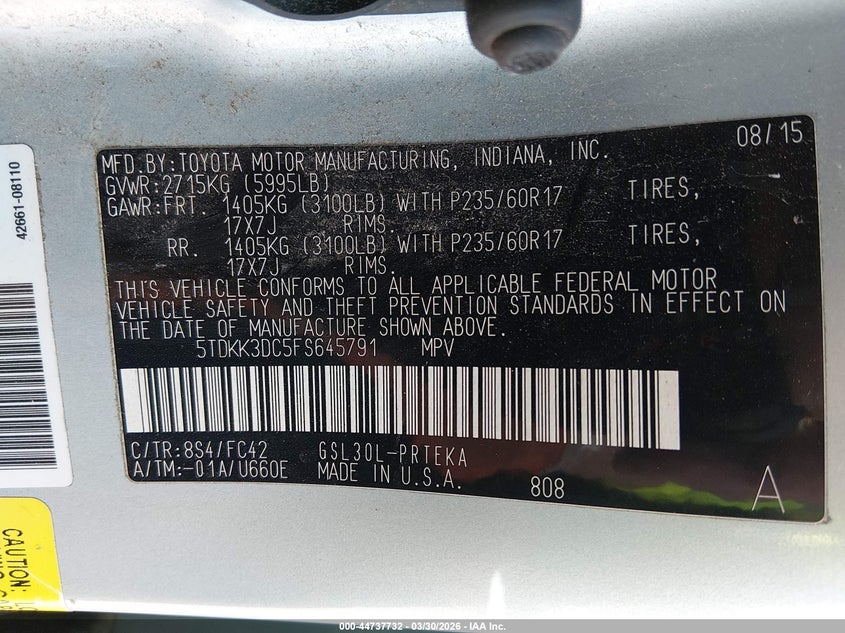 2015 Toyota Sienna Le 8 Passenger