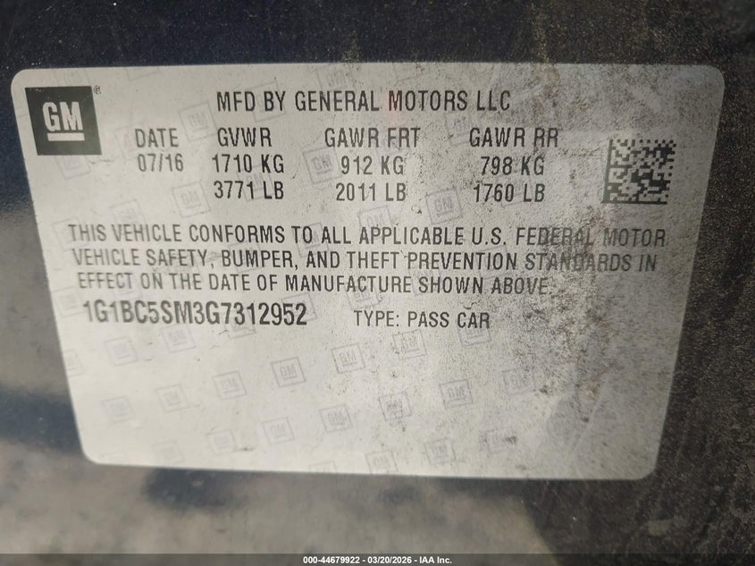 2016 Chevrolet Cruze Ls Auto