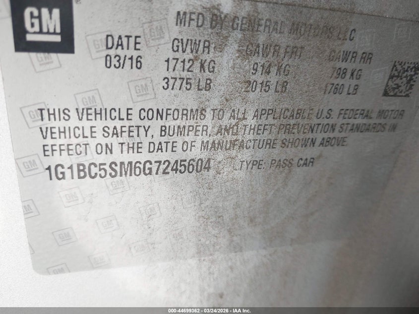 2016 Chevrolet Cruze Ls Auto