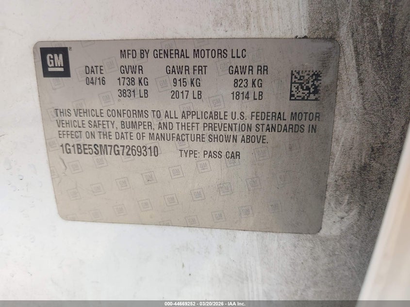 2016 Chevrolet Cruze Lt Auto
