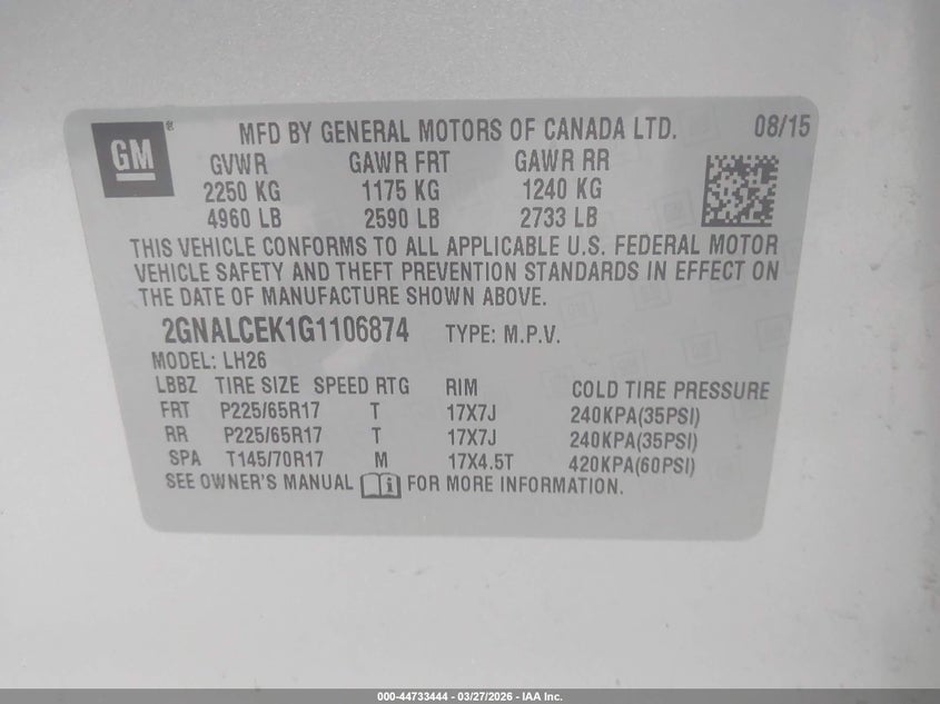 2016 Chevrolet Equinox Lt