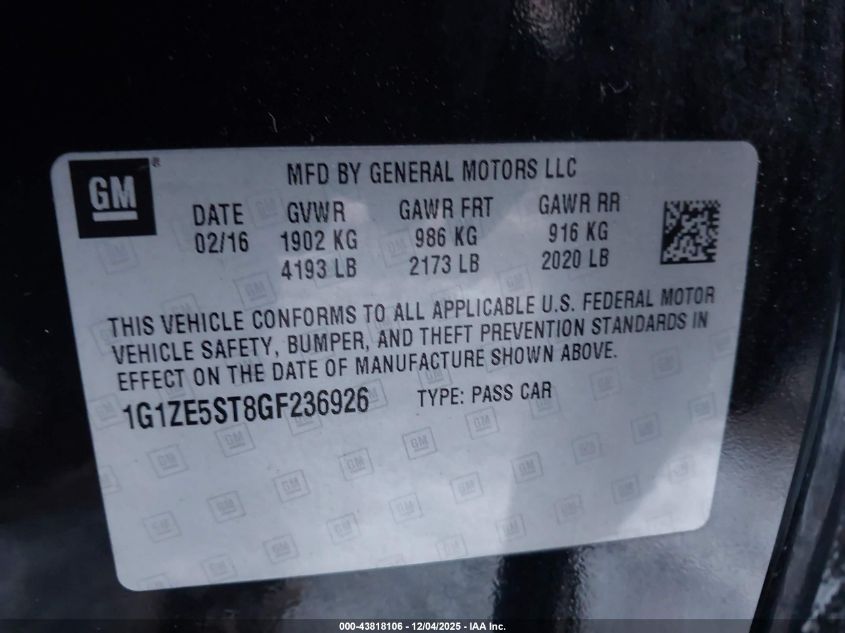 2016 Chevrolet Malibu 1Lt