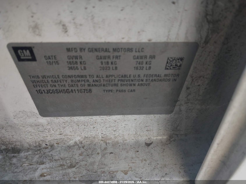 2016 Chevrolet Sonic Lt Auto