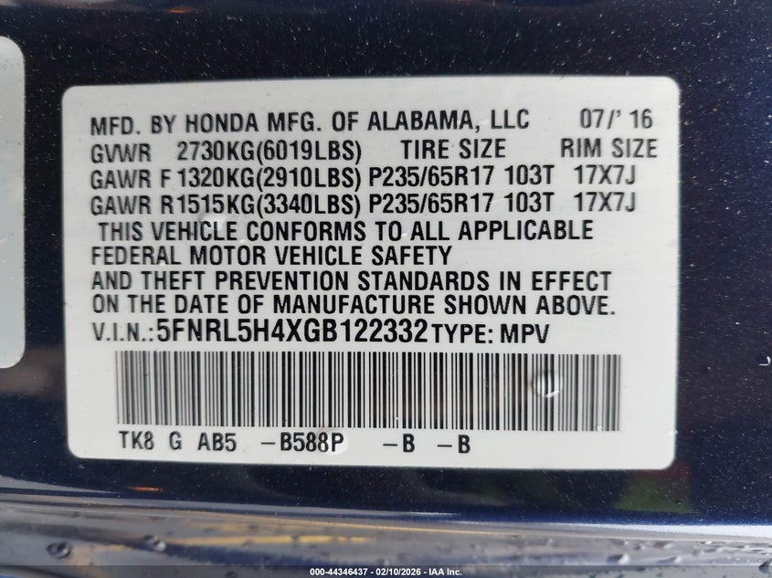 2016 Honda Odyssey Ex