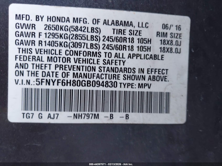 2016 Honda Pilot Ex-L