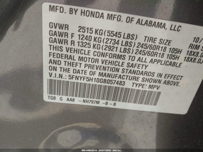 2016 Honda Pilot Lx