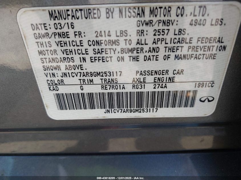 2016 Infiniti Q50 2.0T Premium