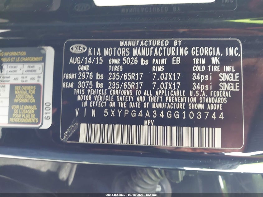 2016 Kia Sorento 2.4L L