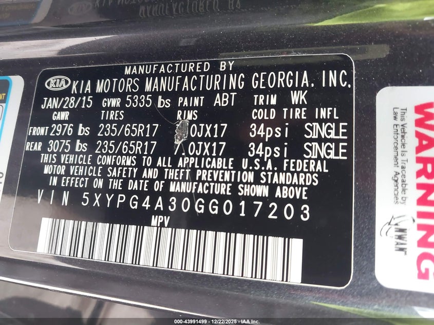 2016 Kia Sorento 2.4L Lx