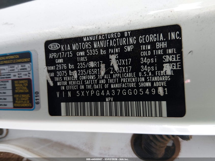 2016 Kia Sorento 2.4L Lx