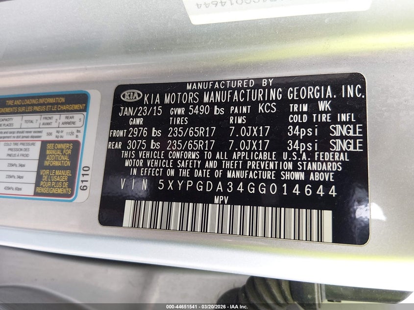 2016 Kia Sorento 2.4L Lx