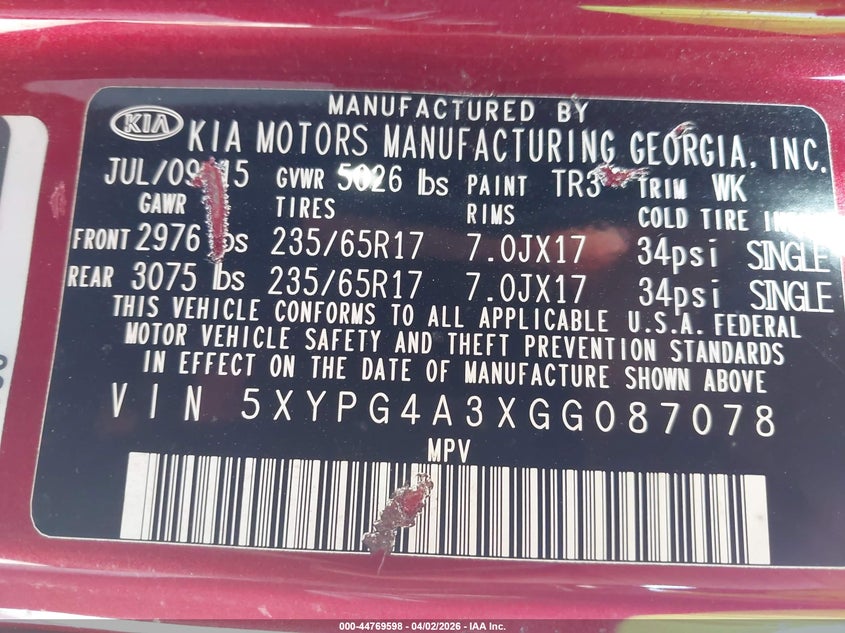 2016 Kia Sorento 2.4L Lx