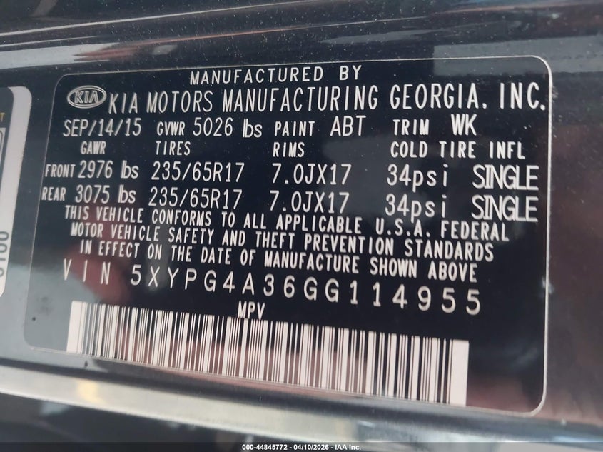 2016 Kia Sorento 2.4L Lx