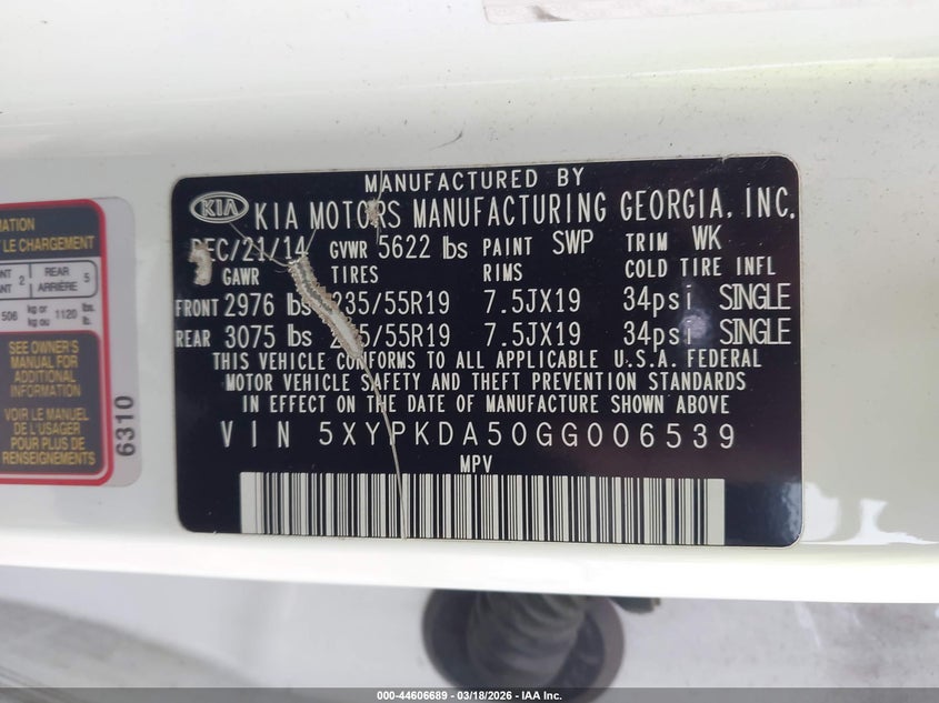 2016 Kia Sorento 3.3L Sxl