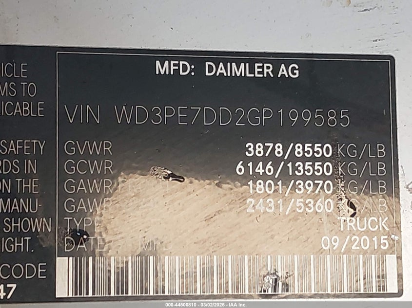 2016 Mercedes-Benz Sprinter 2500 Normal Roof