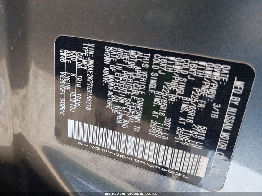 2016 Nissan Quest Platinum/S/Sl/Sv