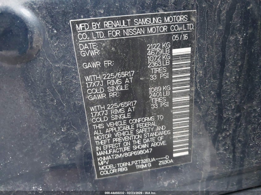 2016 Nissan Rogue S/Sl/Sv