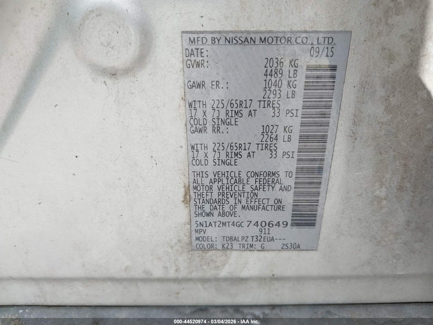 2016 Nissan Rogue S/Sl/Sv